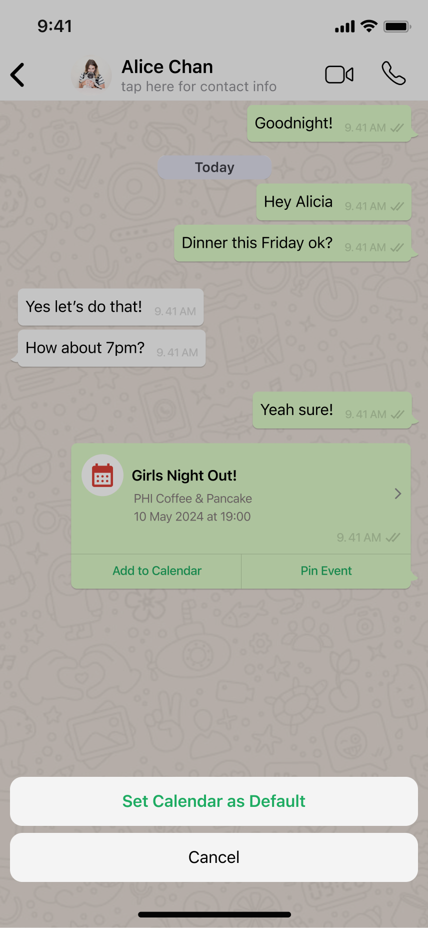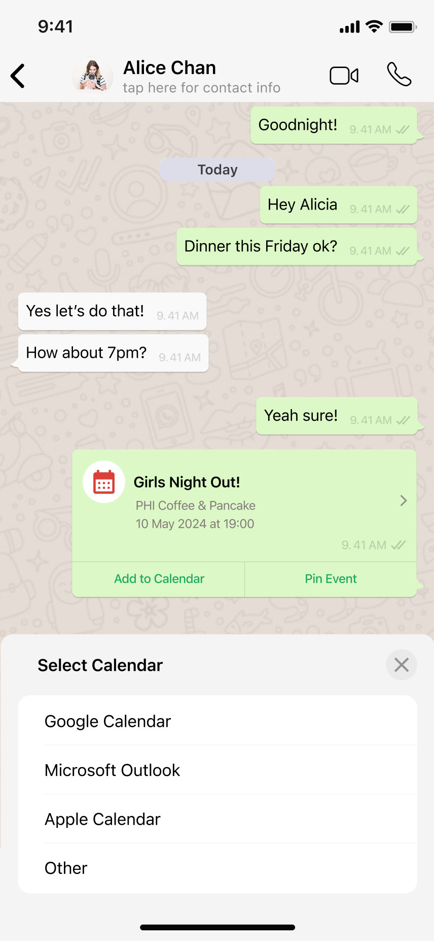 WhatsApp has become one of the primary communication tool for personal and business interactions, often used for arranging appointments. However, transitioning to a separate scheduling app for calendar entries can be cumbersome, leading to potential oversights in appointment management.
